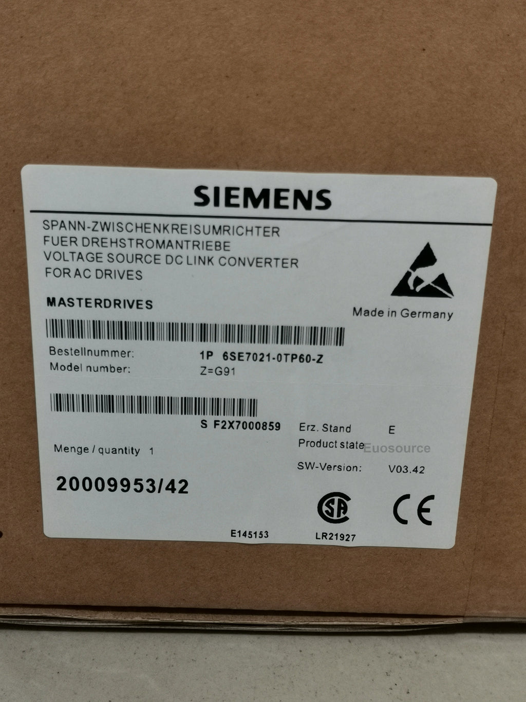 Euo SourceSKU: 6SE7021-0TP60-Z G91